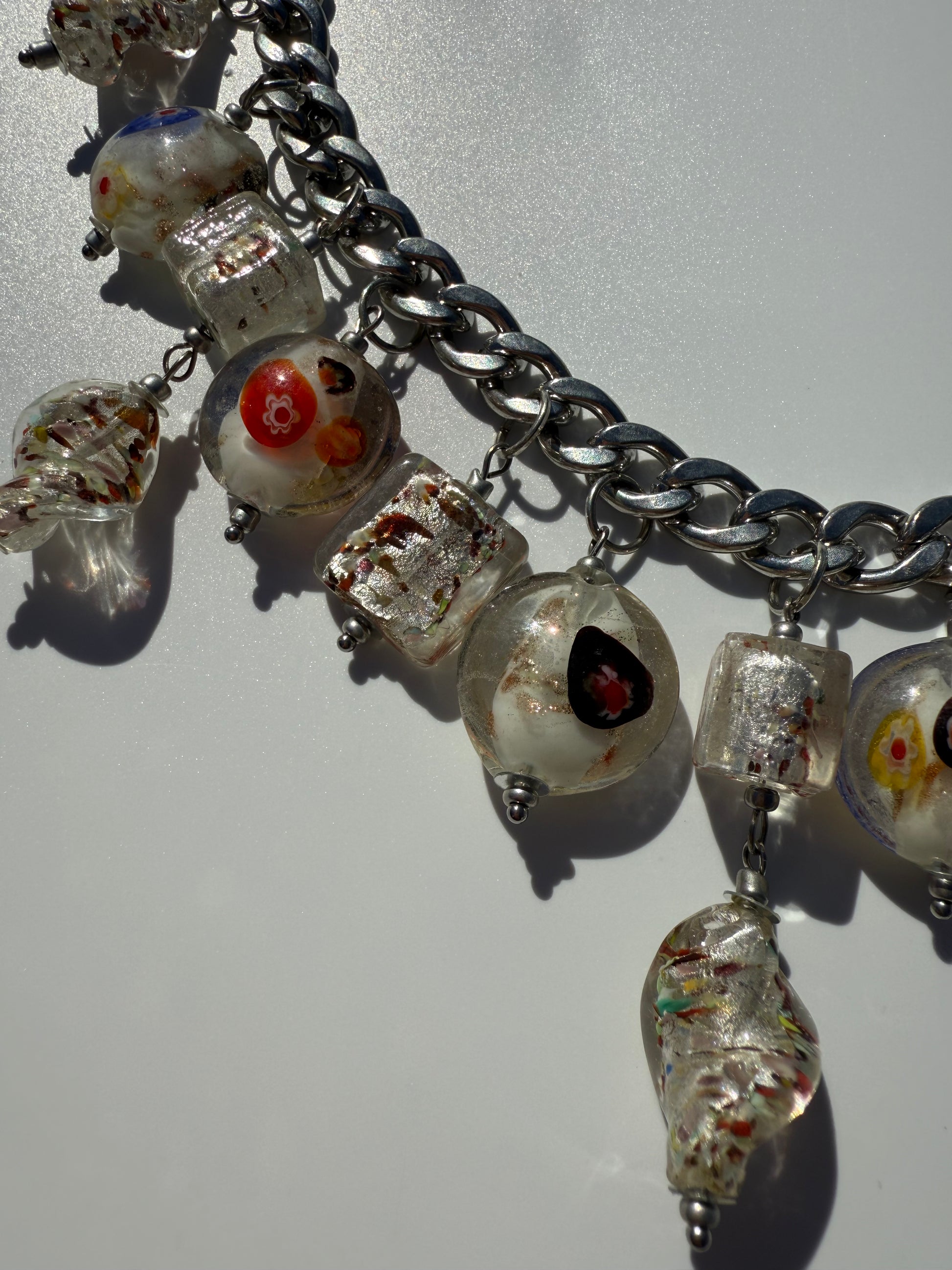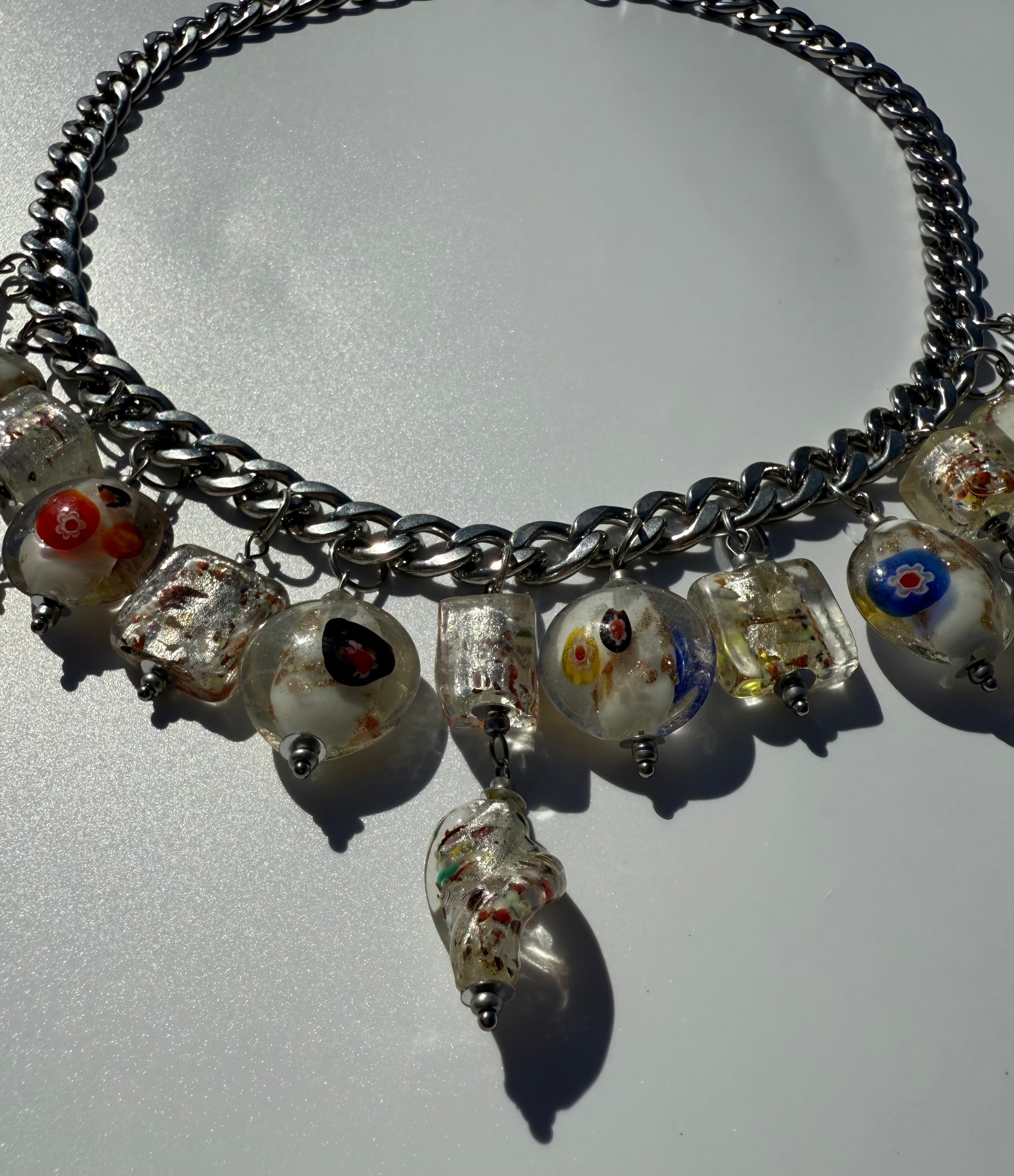 Each necklace is a one-of-a-kind masterpiece, designed and handmade by us, with unique glass charms and glass beads—no two are ever the same.