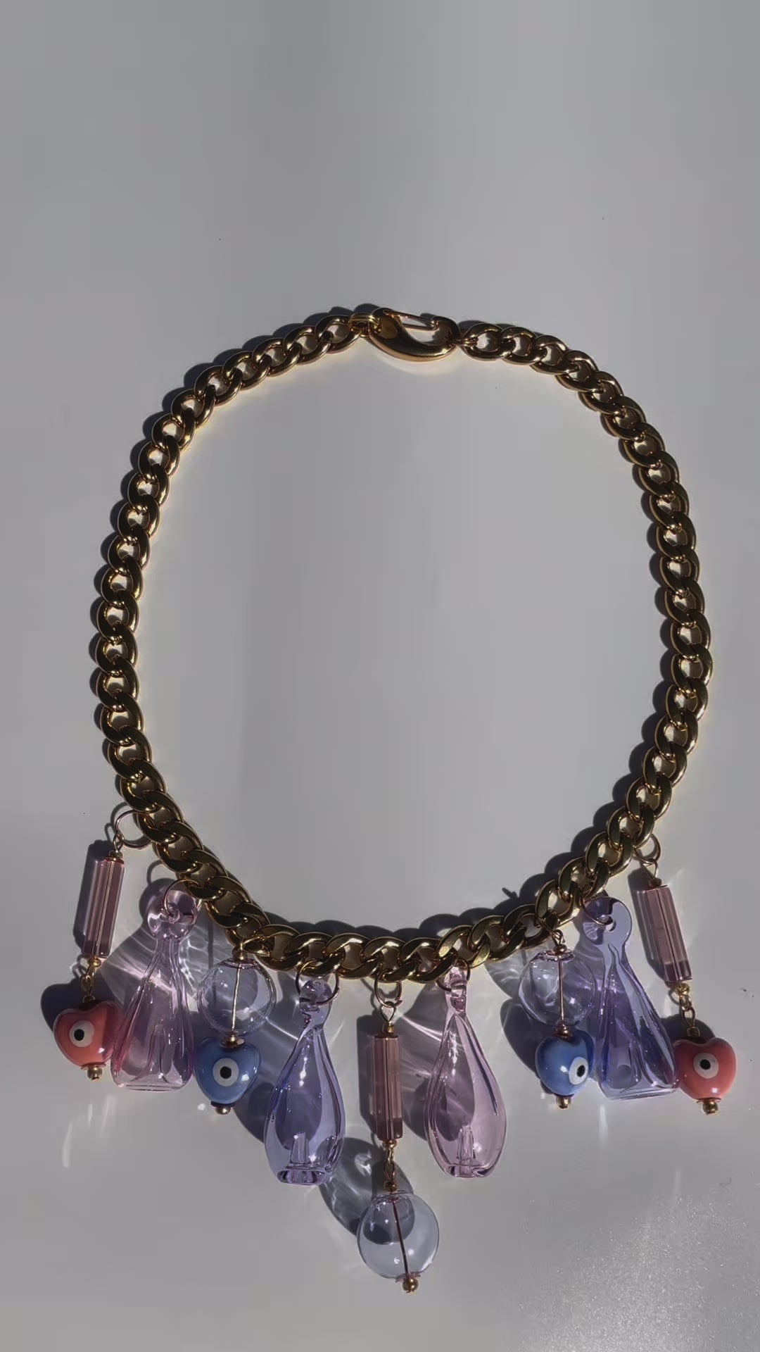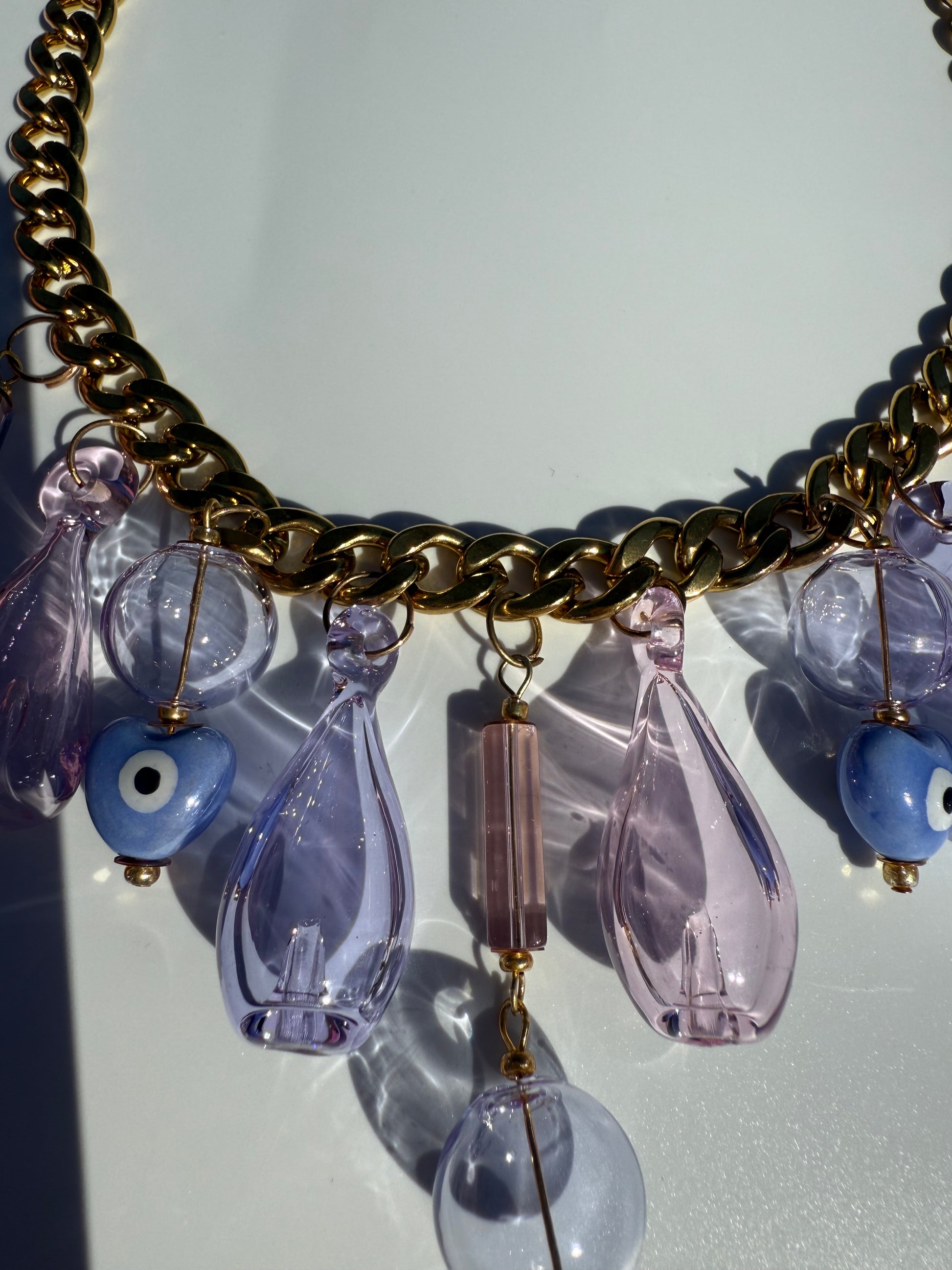 Each necklace is a one-of-a-kind masterpiece, designed and handmade by us, with unique glass charms and glass beads—no two are ever the same.