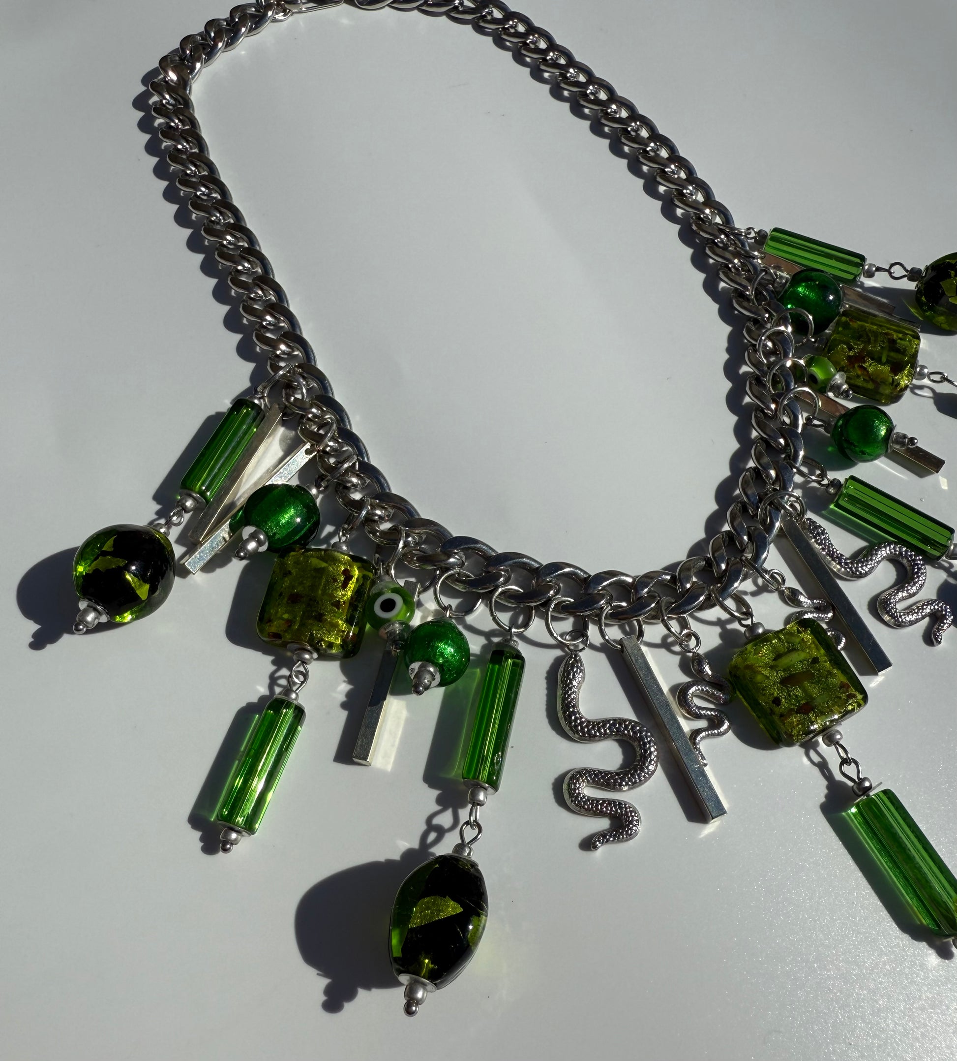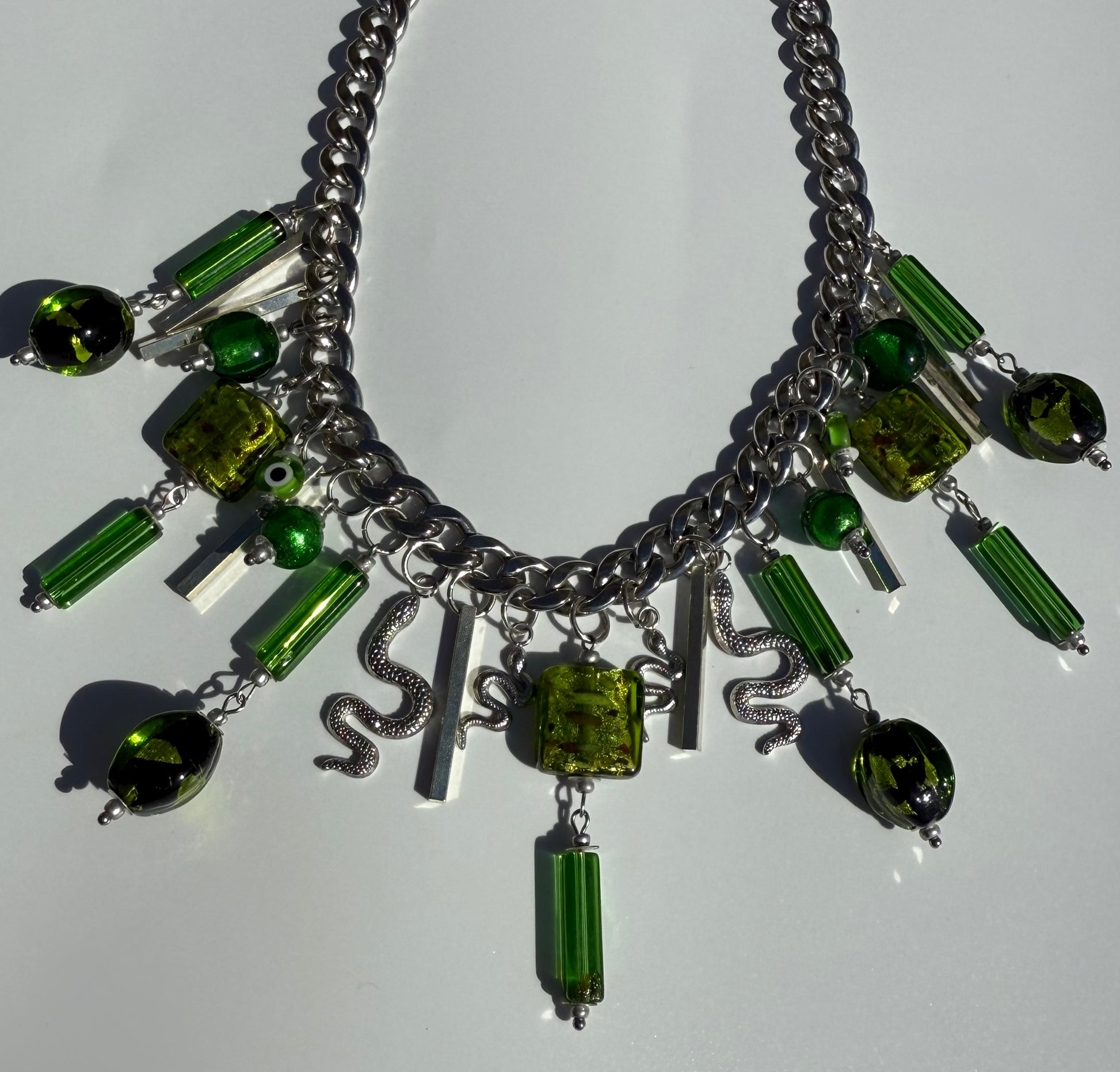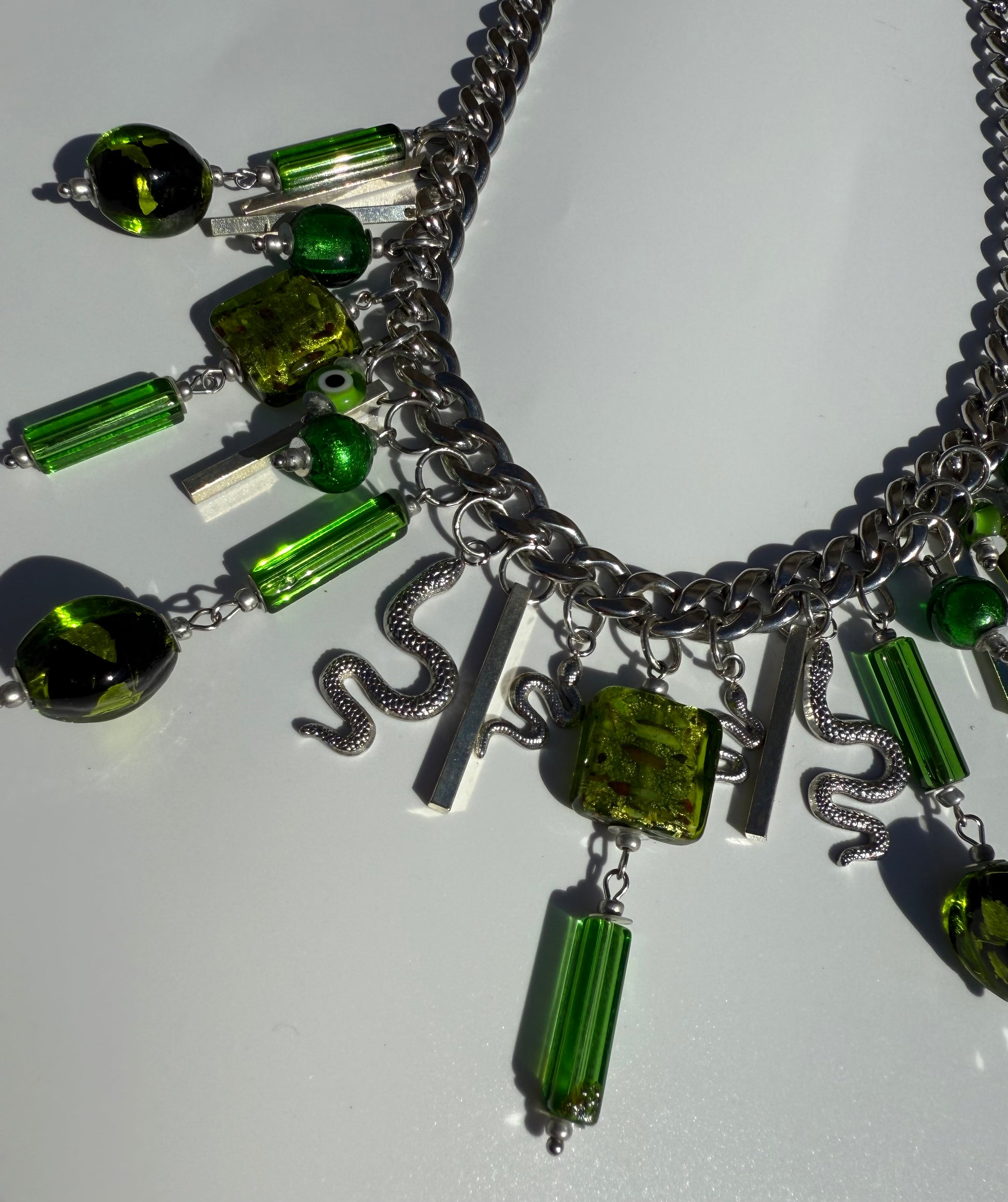 Timeless Treasure: One-of-a-Kind Glass Charm Necklaces, Handmade to Last Forever This isn’t just jewelry—it’s a lifetime piece. Crafted with high-quality stainless steel that never fades, never tarnishes, and stays as radiant as you—100% hypoallergenic, nickel free and made to be worn every day, forever. Each necklace is a one-of-a-kind masterpiece, designed and handmade by us, with unique glass charms and glass beads—no two are ever the same. This is not a standard necklace. This is heirloom-level jewelry—made to last a lifetime. Wear it. Love it. Keep it—forever.