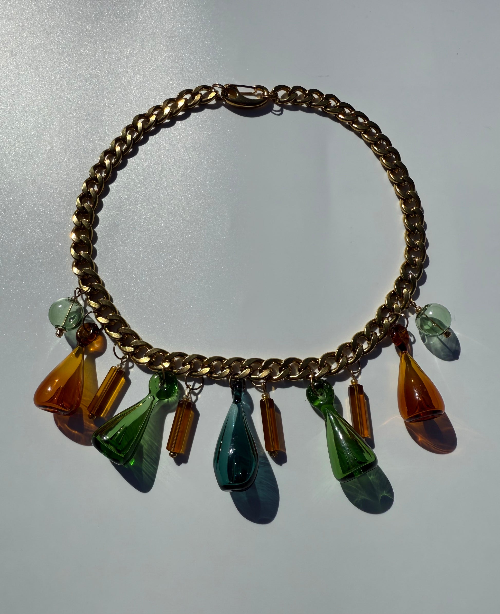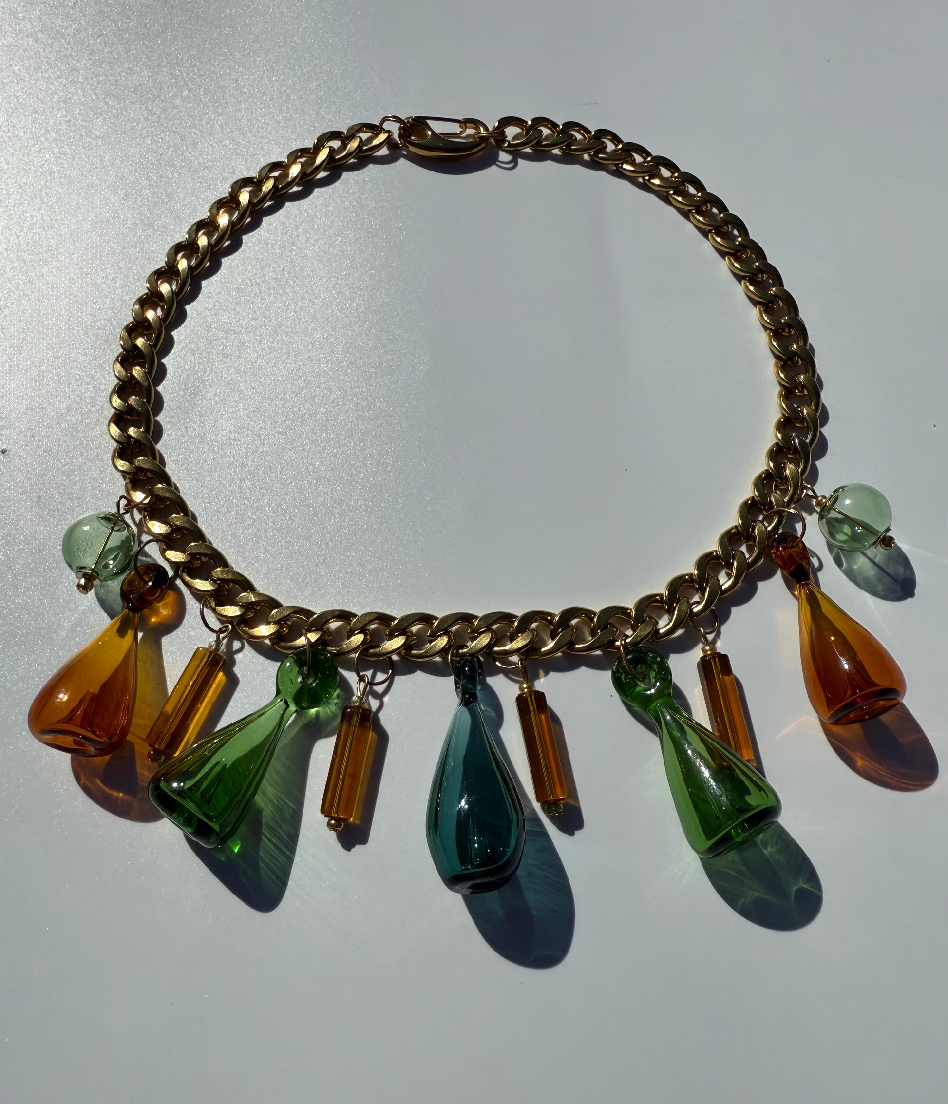 Each necklace is a one-of-a-kind masterpiece, designed and handmade by us, with unique glass charms and glass beads—no two are ever the same.