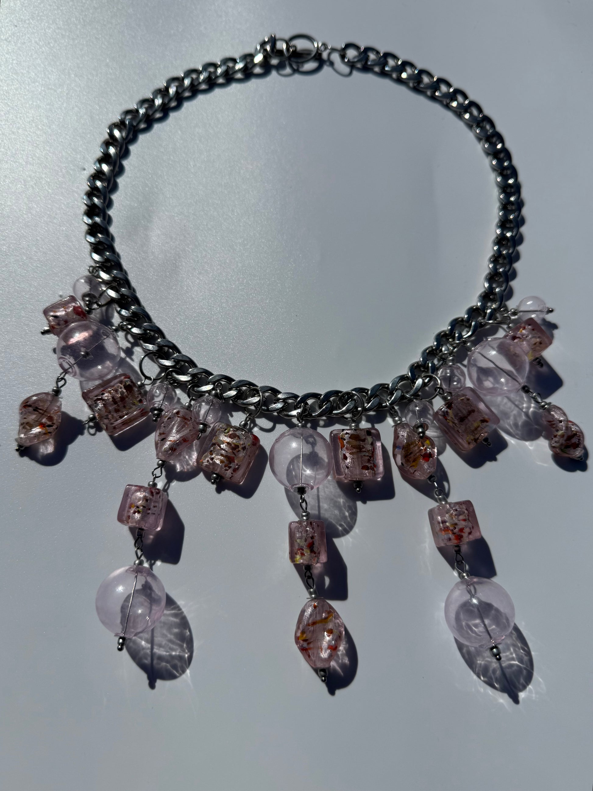 Each necklace is a one-of-a-kind masterpiece, designed and handmade by us, with unique glass charms and glass beads—no two are ever the same.