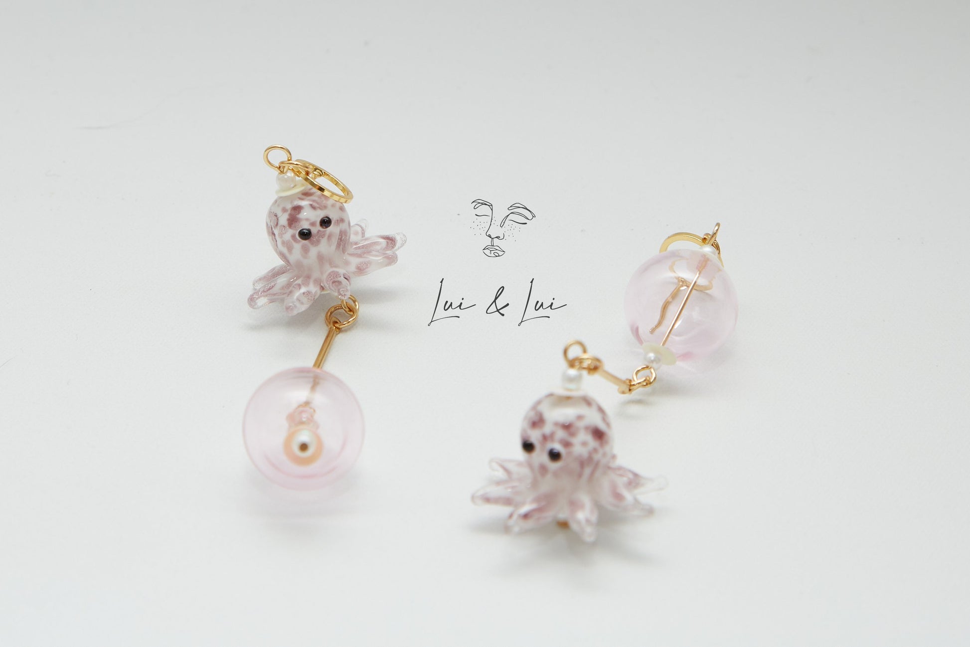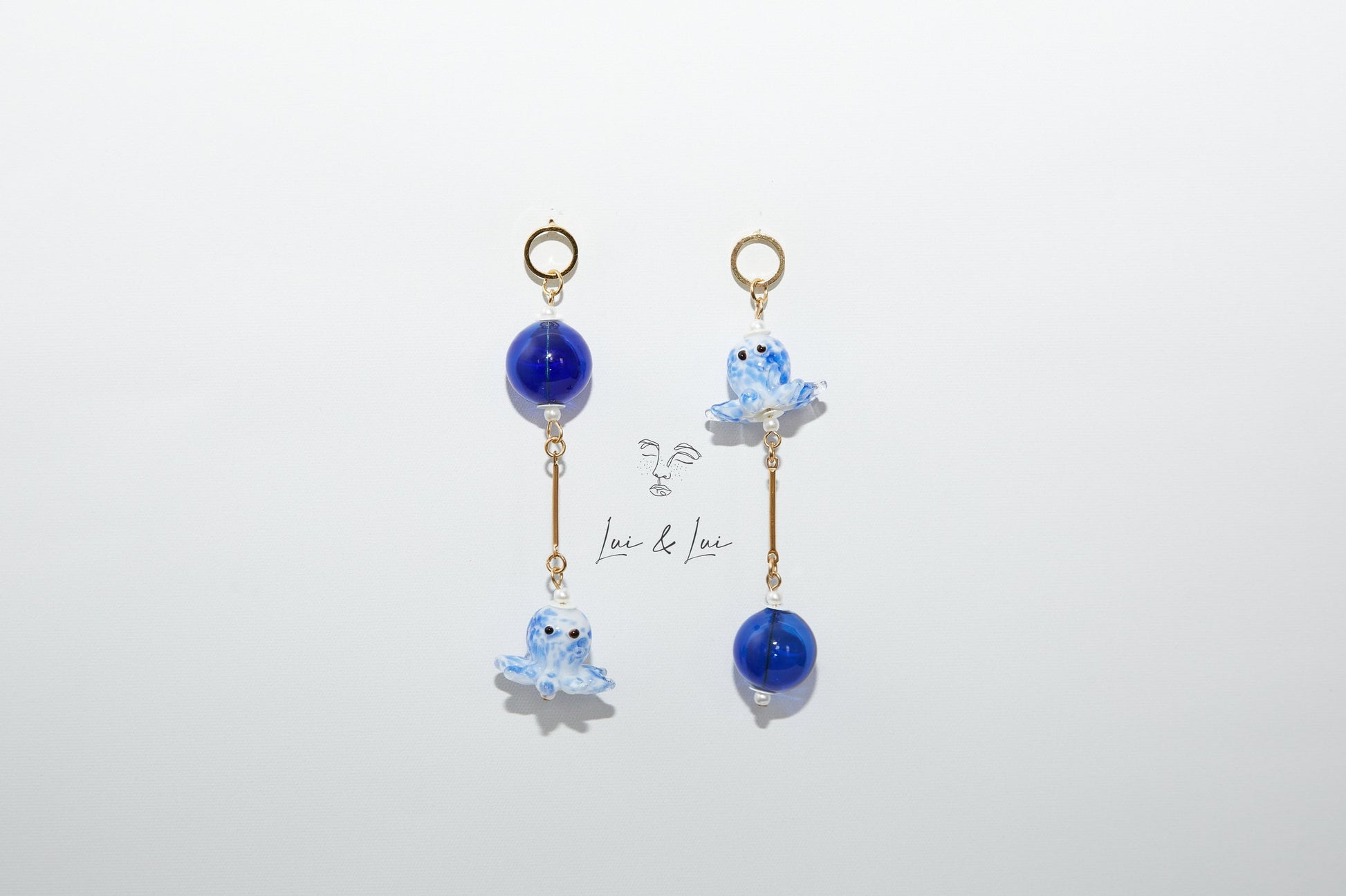 These asymmetrical long earrings are the perfect mix of edgy and elegant—one side with a delicate glass orb, the other with a bold little pulpit. Eye-catching, playful, and effortlessly cool.