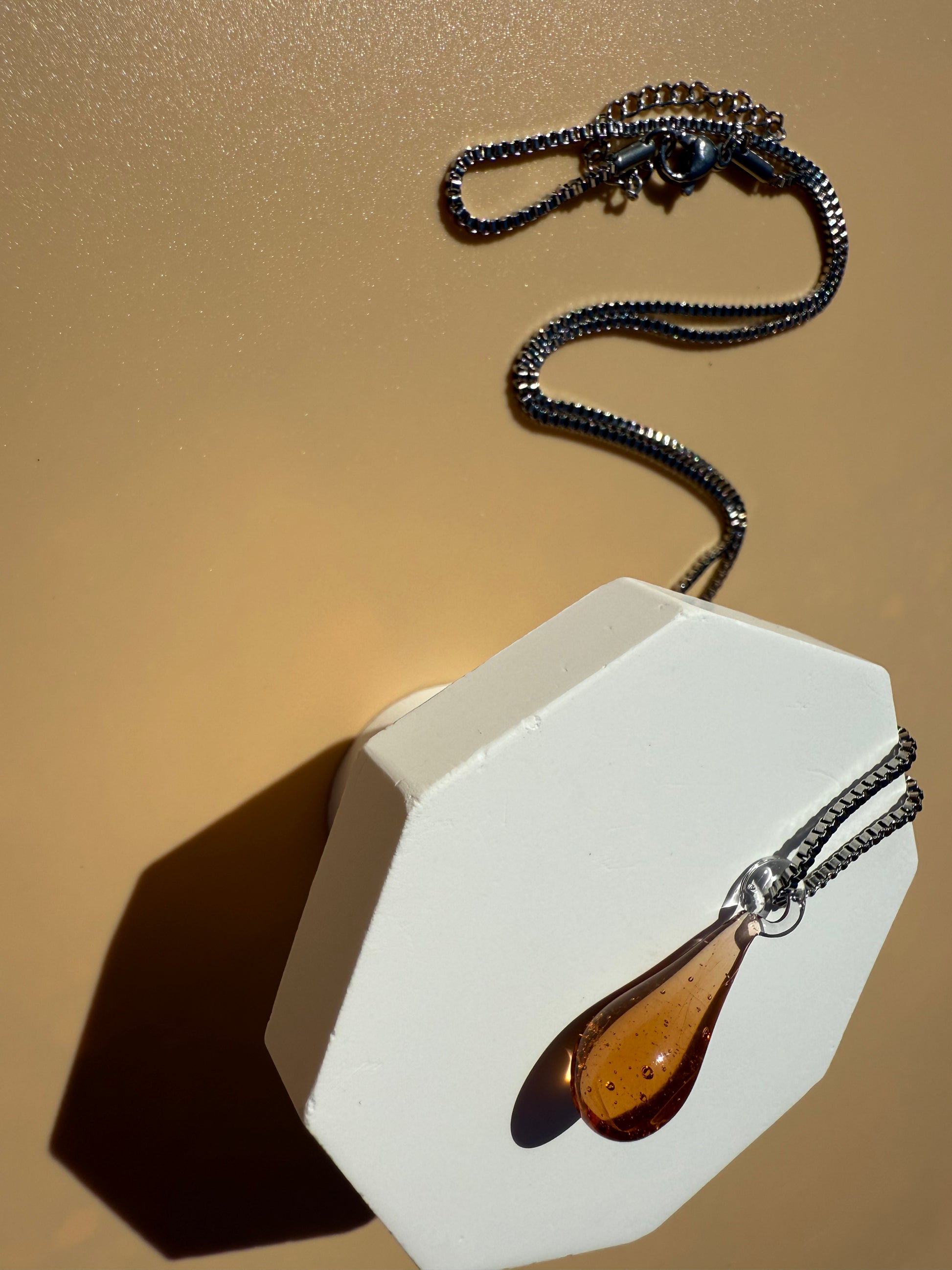 ntroducing our sleek stainless steel necklace—a must-have for the coolest girls. Crafted with care, it’s hypoallergenic, nickel free, and non-tarnishable, ensuring lasting shine and comfort every day. The delicate glass charm adds a touch of elegance and intrigue, making this piece the perfect accessory to elevate any outfit. Embrace effortless style and durability with a necklace that’s as unique as you are.