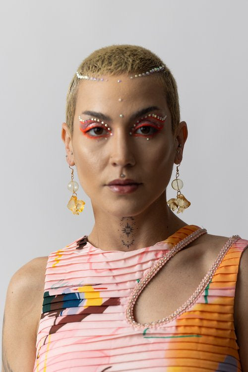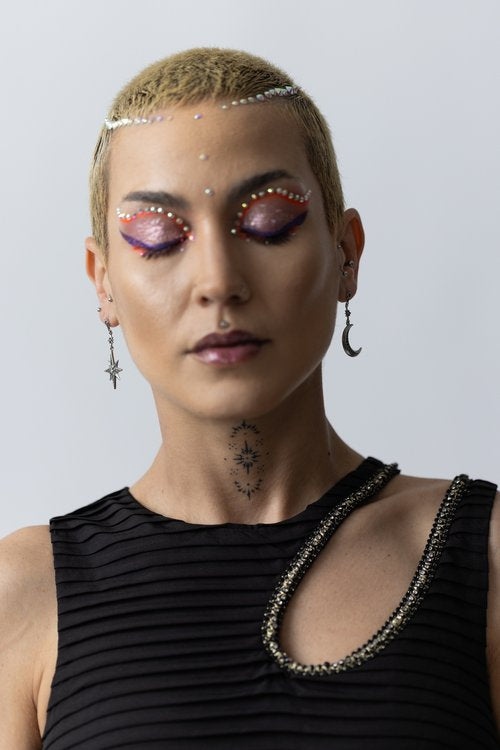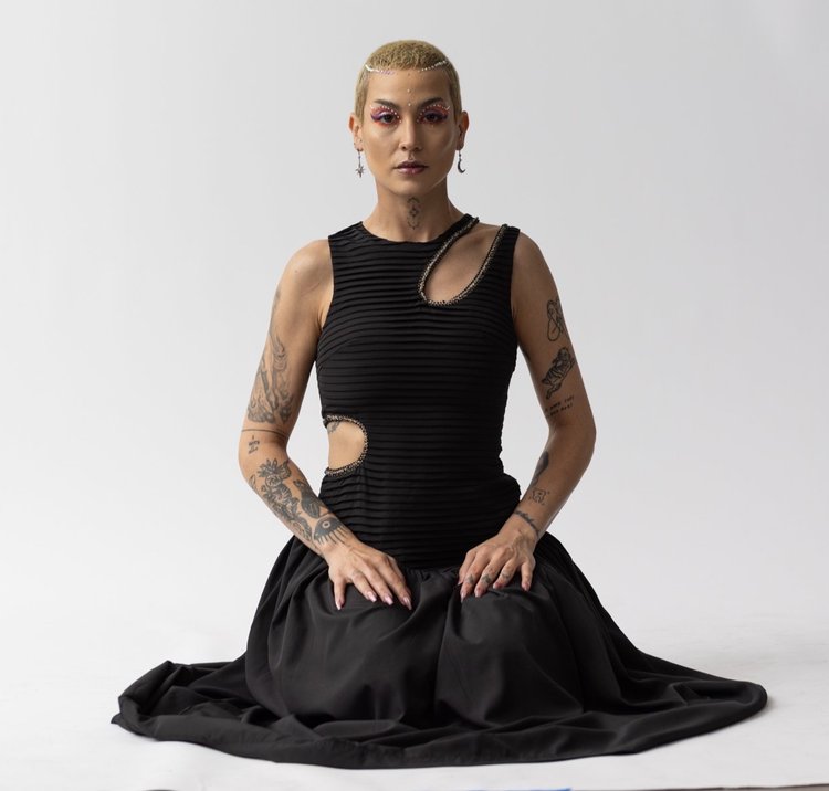 A dress that whispers elegance and radiates allure. This masterpiece blends vintage sophistication with modern charm, featuring a subtly flared skirt that moves gracefully with every step—just the right amount of volume for effortless allure. The low waistline, inspired by the glamour of the 1920s, elongates the silhouette with a refined, effortless drape. Delicate cutouts at the shoulder and waist add a touch of intrigue, accentuated by shimmering strass details that catch the light with every movement. This is not just a dress—it’s an experience. Wear it, and let the magic unfold.